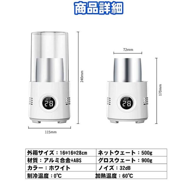 ドリンクホルダー 0℃〜60℃ カップ ドリンク クーラー ホルダー 自宅 冷温 急速冷却 静音 LED表示 2種類の冷蔵方法 ペットボトル・缶対応