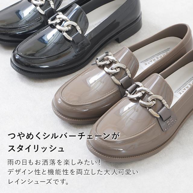 スタイリッシュなきれいめローファーのレインシューズです。