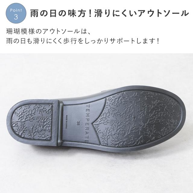 珊瑚模様のアウトソールは、雨の日も滑りにくい。