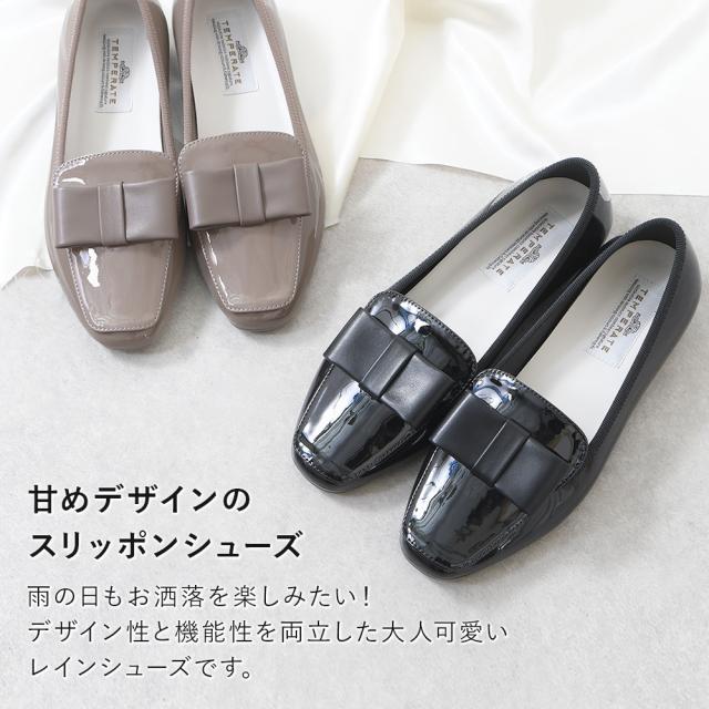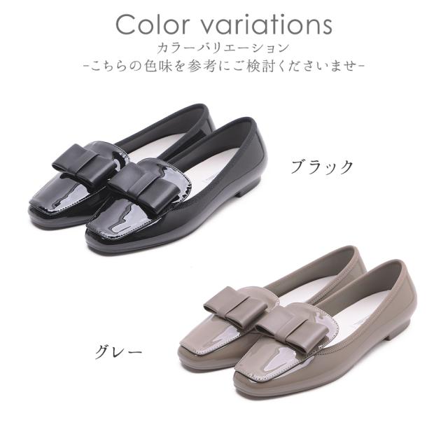 レインシューズ レディース スリッポン レインパンプス リボン 雨靴 ローヒール ぺたんこ スクエアトゥ 雨 完全防水 防水 防滑 痛くない 歩きやすい 軽量 軽い柔らかい 長時間 疲れない おしゃれ きれいめ かわいい 通勤 黒 ブラック 大きいサイズ 晴雨兼用 靴