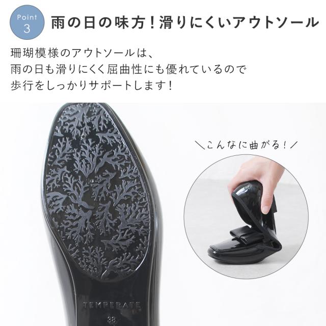 耐水性もバッチリなので、梅雨時期に頼れる防水パンプスです。