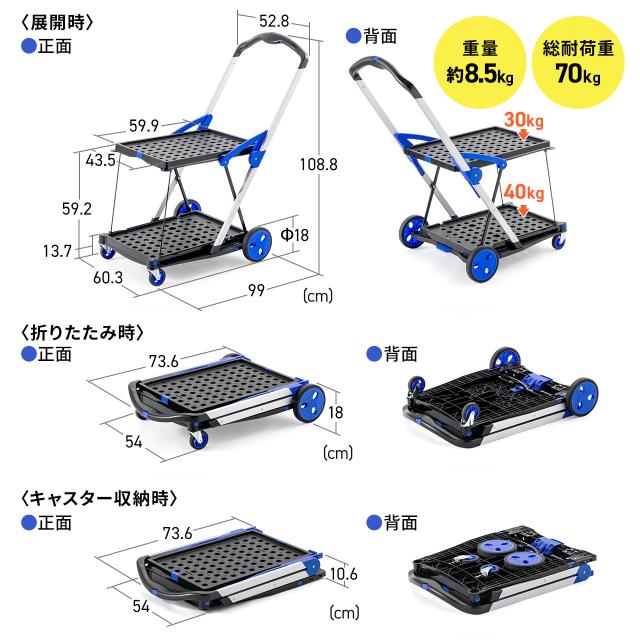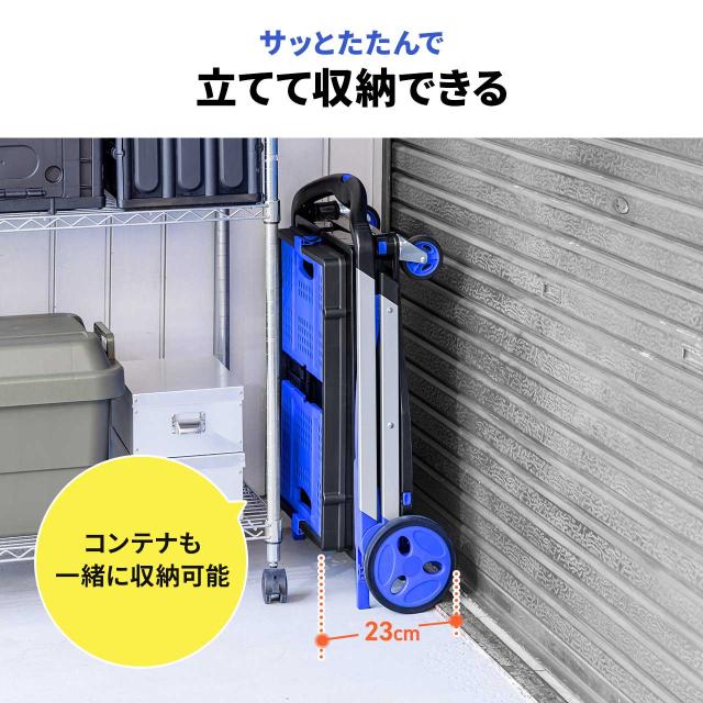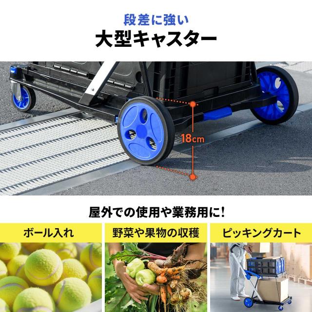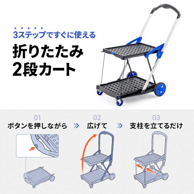 ●折りたたみができる2段式カート/台車です。●折りたたむことができるカート専用コンテナが1個付属しています。