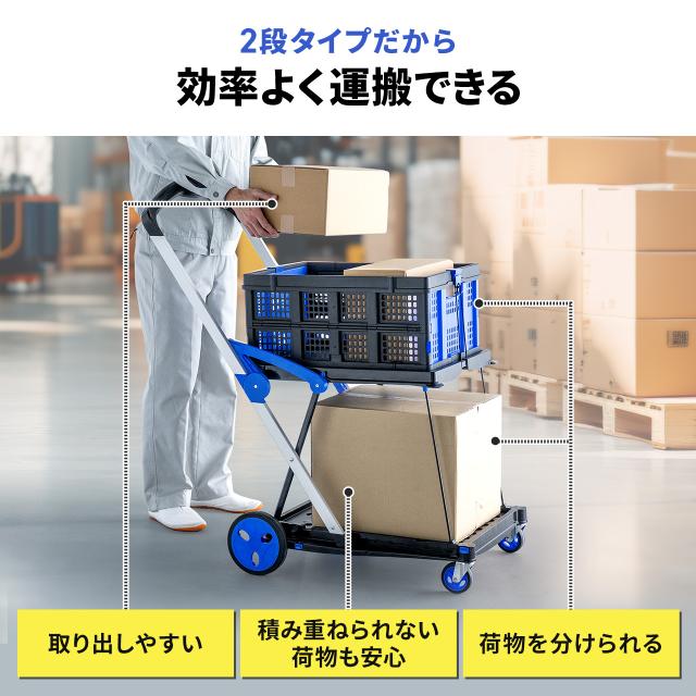 ●2段タイプのため荷物を分けることができ、効率よく運搬することができます。