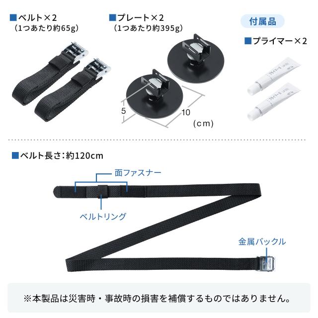 ⇒ご購入の前にご確認下さいテレビスタンドの転倒を防ぐことができる器具。アジャスタでは対応できないテレビスタンドの横滑りにも対応した装置。ネジ止めや穴あけなどの工事不要な簡単設計。震度6強耐震試験クリア。バックルが付いているので、一時的にテレビスタンドを移動させることが可能。プライマー付属。2個セット入り【WEB限定商品】
