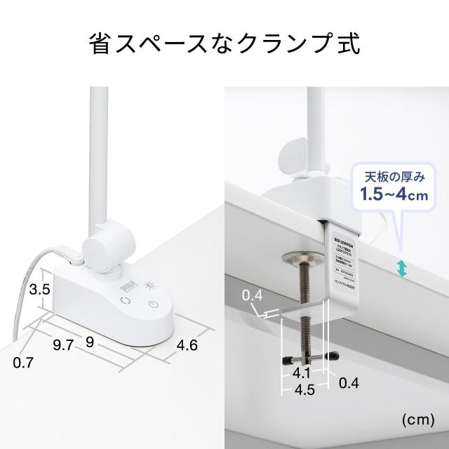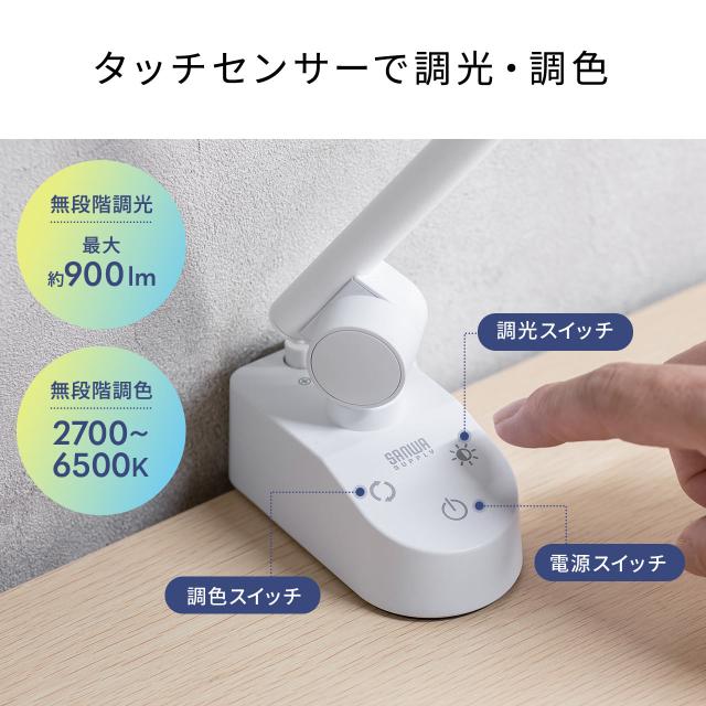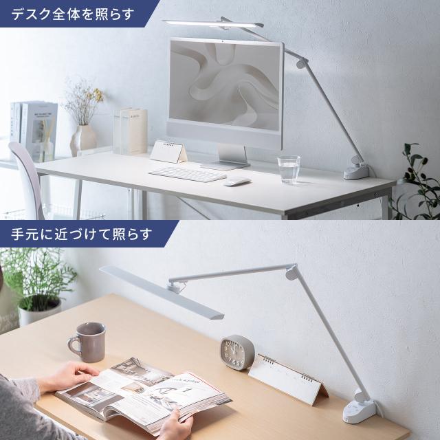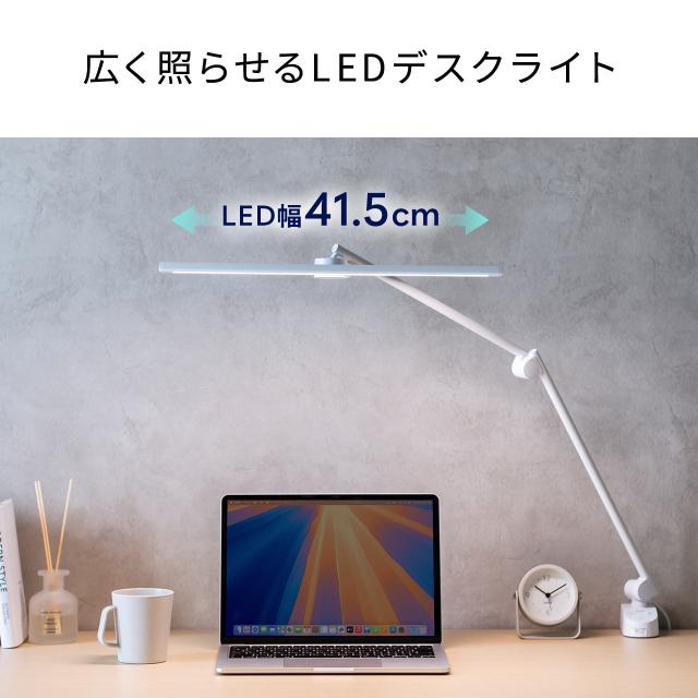 デスクライト 広範囲照射LED 調光調色 アームライト タッチセンサー クランプ固定 横幅45cm ホワイト[800-LED093]