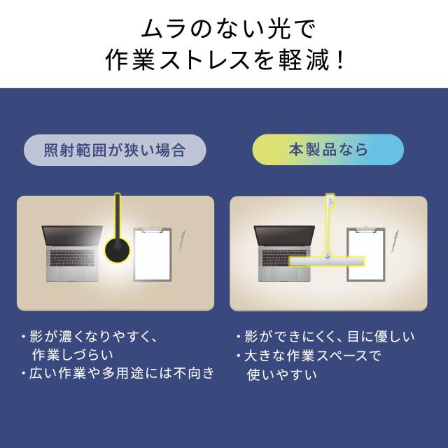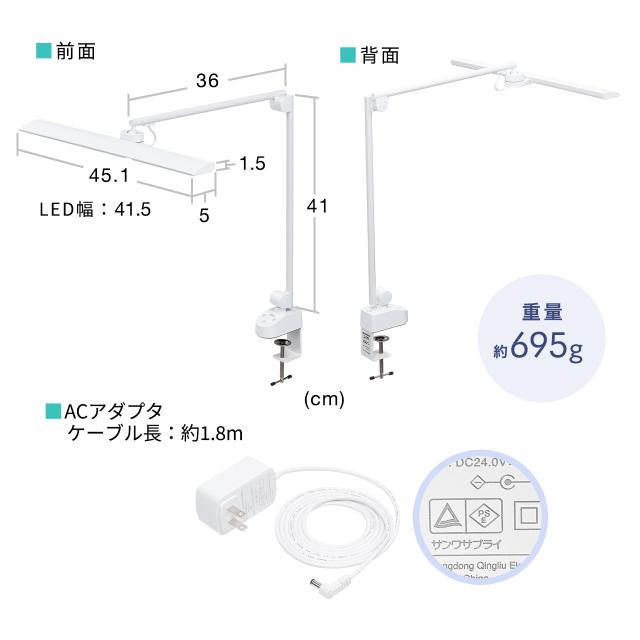 ●クランプ固定式デスクライトLEDです。●LED幅約45cmでデスク上を均一に照らします。