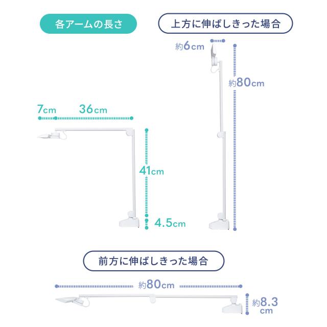 ●アームは3関節で、手元や必要な場所にLEDを動かして明るさ範囲を変えることができます。