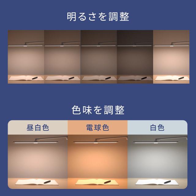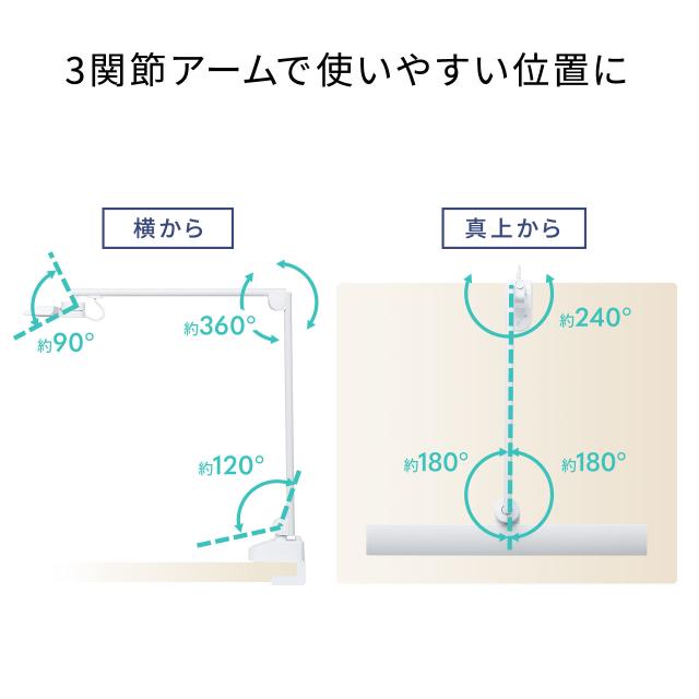 ⇒ご購入の前にご確認下さいクランプ固定式LEDデスクライト。幅約45cmの広範囲照射。3関節アームで自在な位置調整。昼白色/電球色/白色の3色切替。長押し無段階、短押し4段階調光。タッチセンサーでスマート操作。【WEB限定商品】