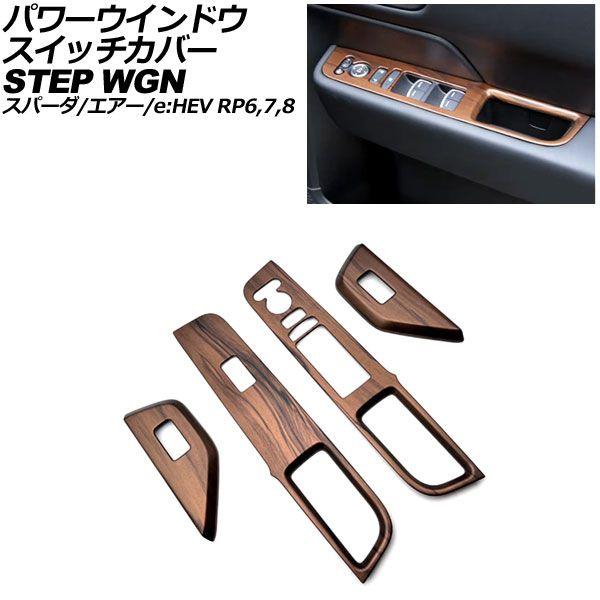 パワーウインドウスイッチカバー ホンダ ステップワゴン/スパーダ/エアー/e:HEV RP6/RP7/RP8 2022年05月〜 茶木目 ABS製 入数:1セット(4個) AP-IT3562-BRWD