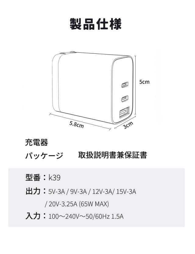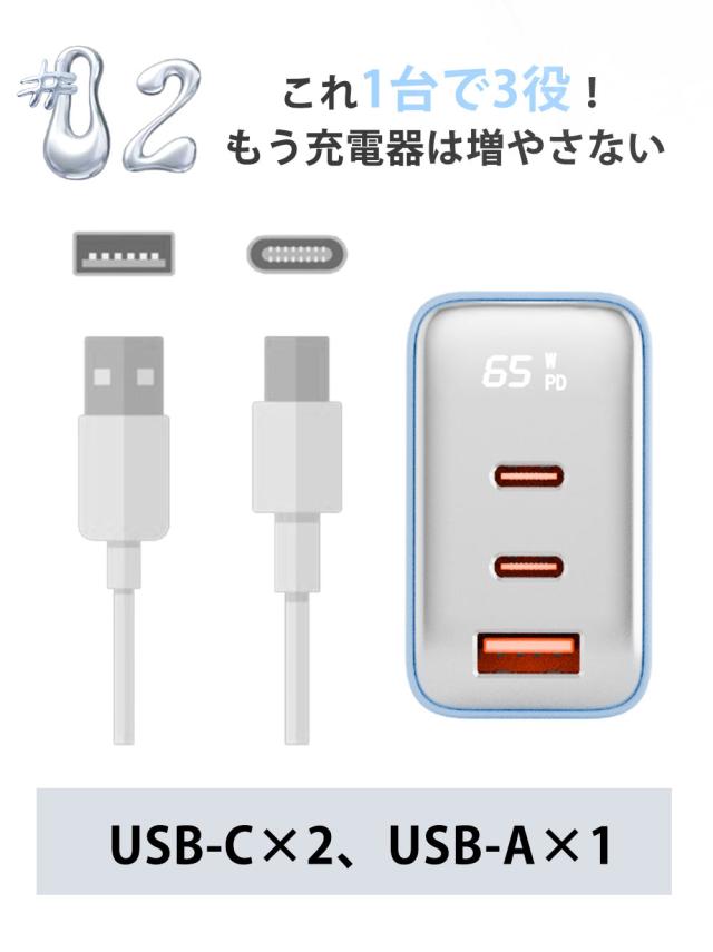 次世代テクノロジー搭載!最新GaN技術採用 65W超高速充電器