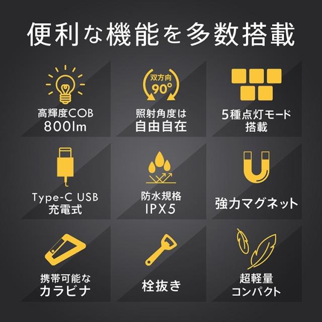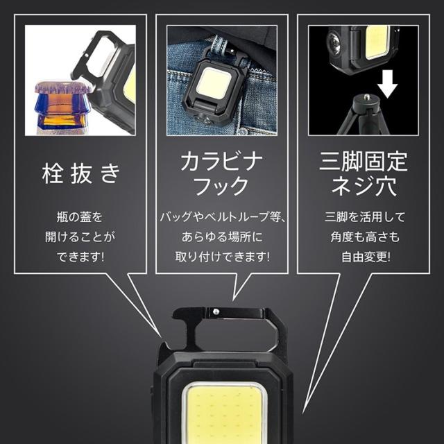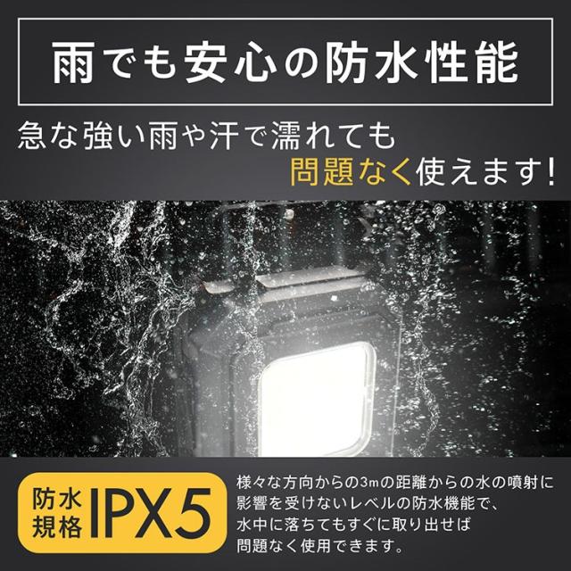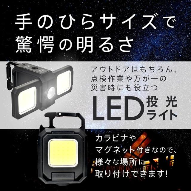 LED投光ライト 投光器 作業用ライト カラビナ付き USB充電 5つ点灯モード IPX5防水 超軽量 持ち運び便利 アウトドア キャンプ 点検作業 災害時 非常用 停電
