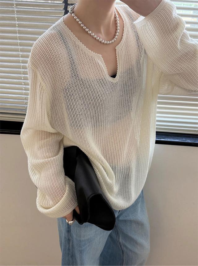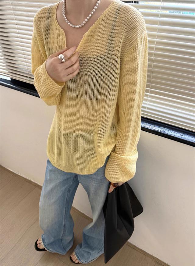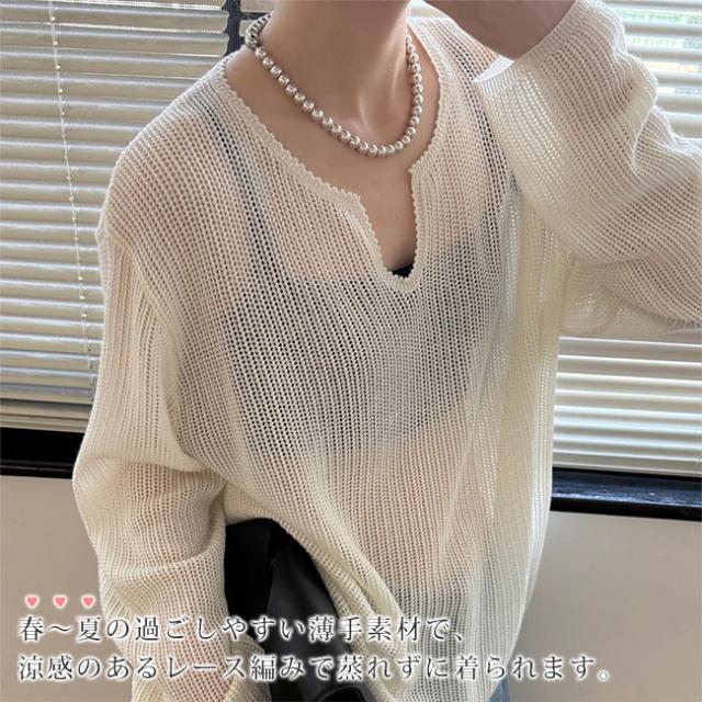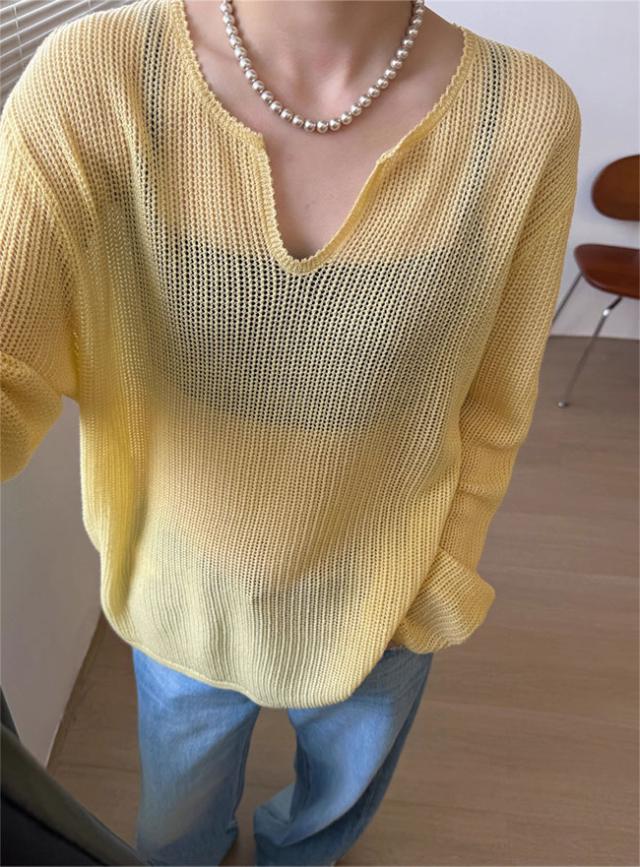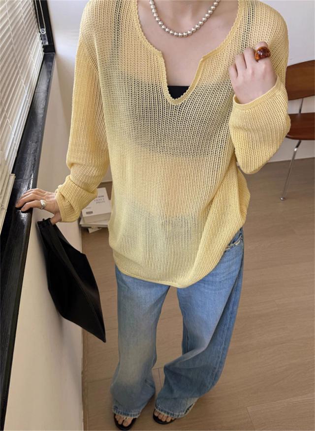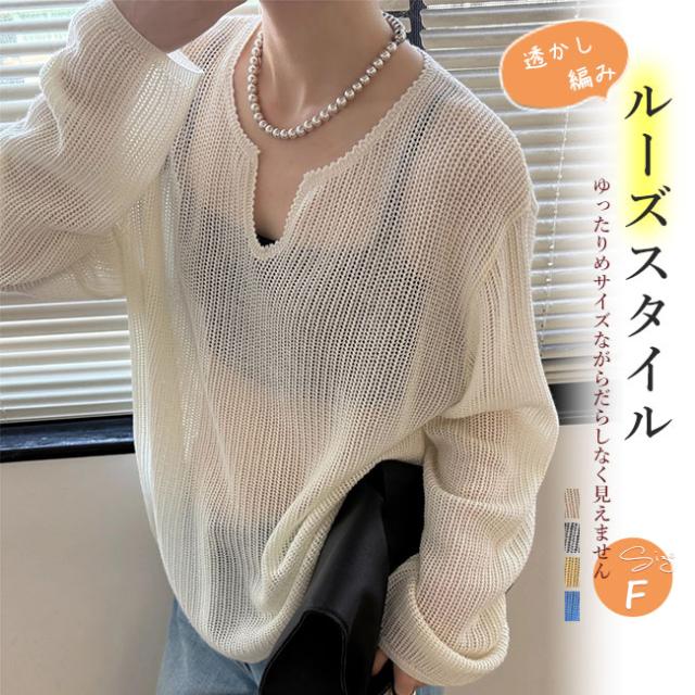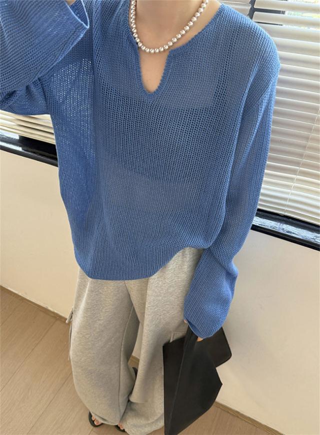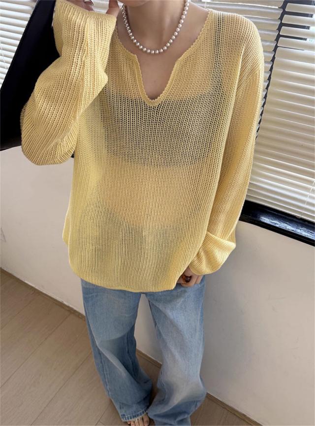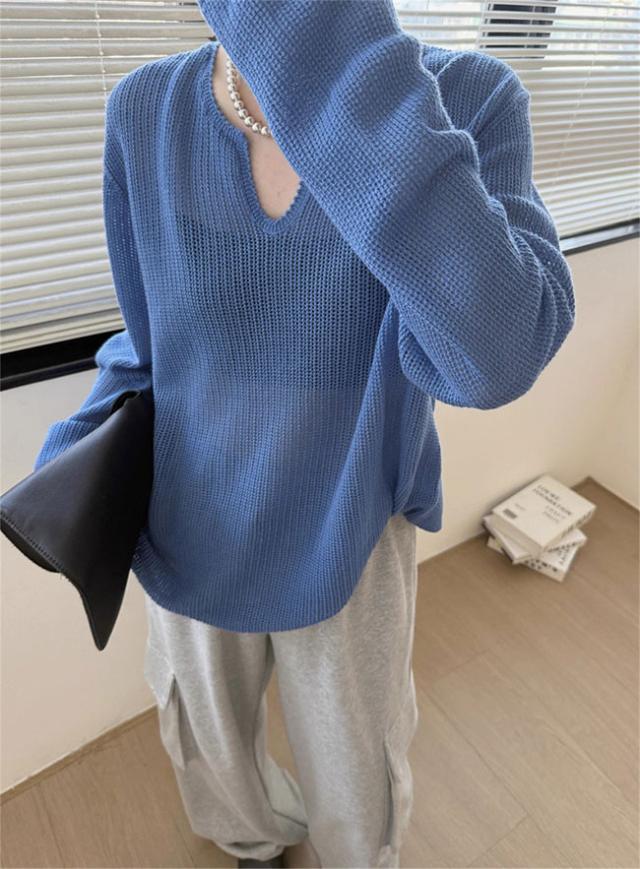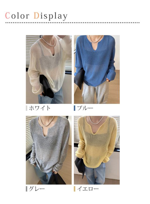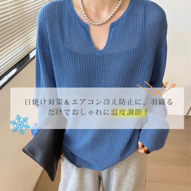 トレンディなパステルカラー シザーネック ドロップショルダー 薄手UVカットニット ルーズシルエット レディーストップス