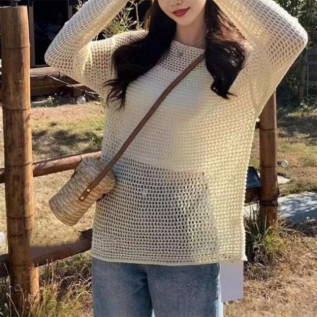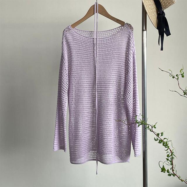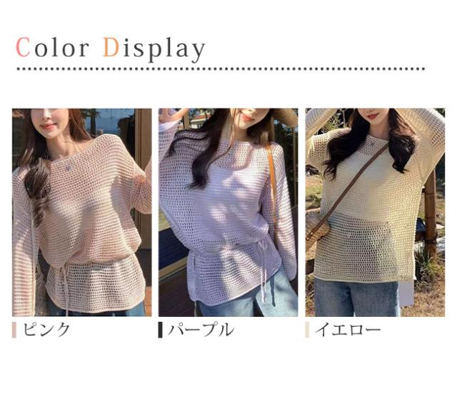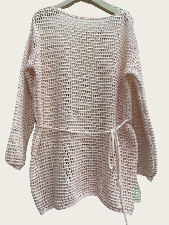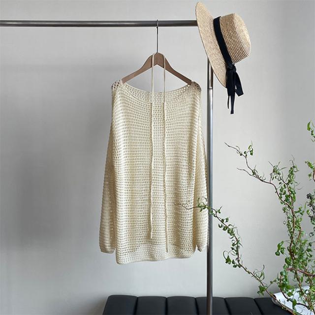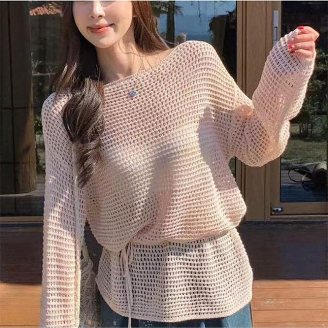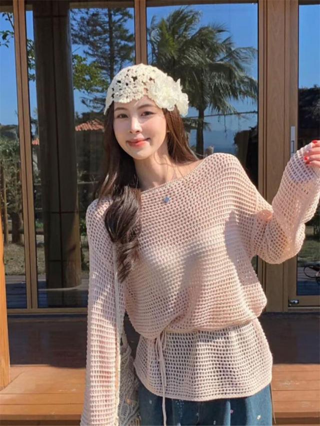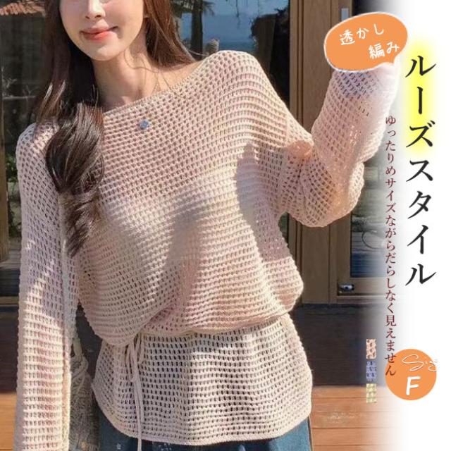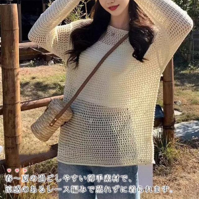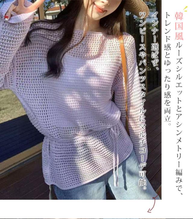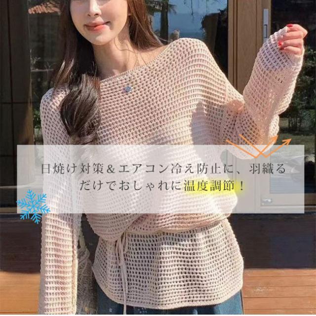 2026春夏新作 薄手レース編みニット ウエスト絞りデザイン ゆったり長袖UVカットカーディガン レディース