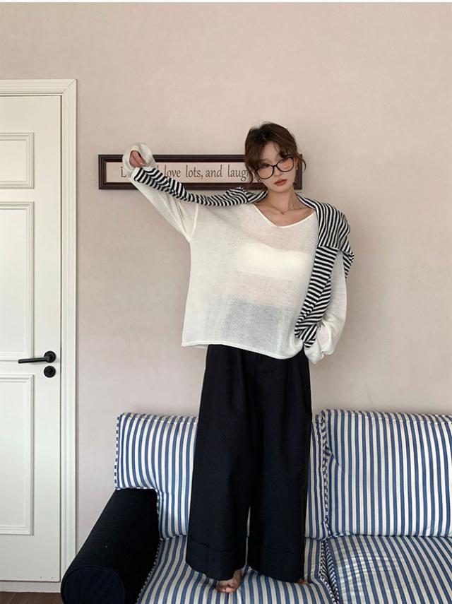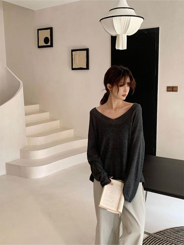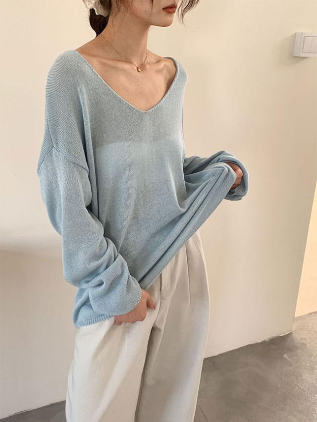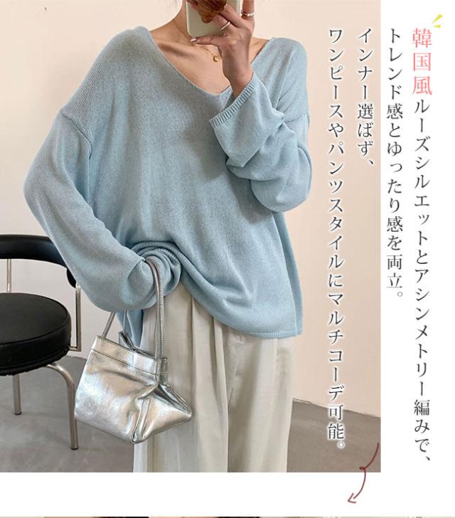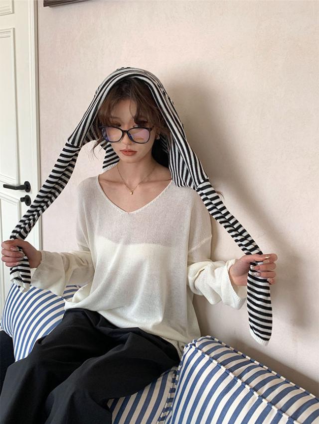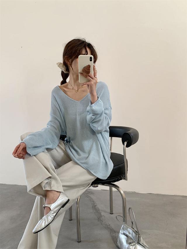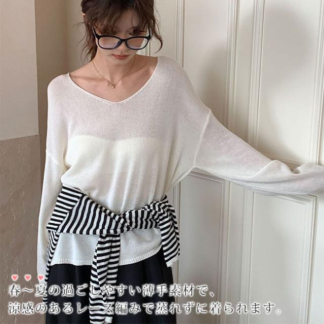 2026春新作 Vネックニットカーディガン 韓国風ゆったり薄手ロングスリーブ UVカット 優しい雰囲気のマルチスタイルトップス