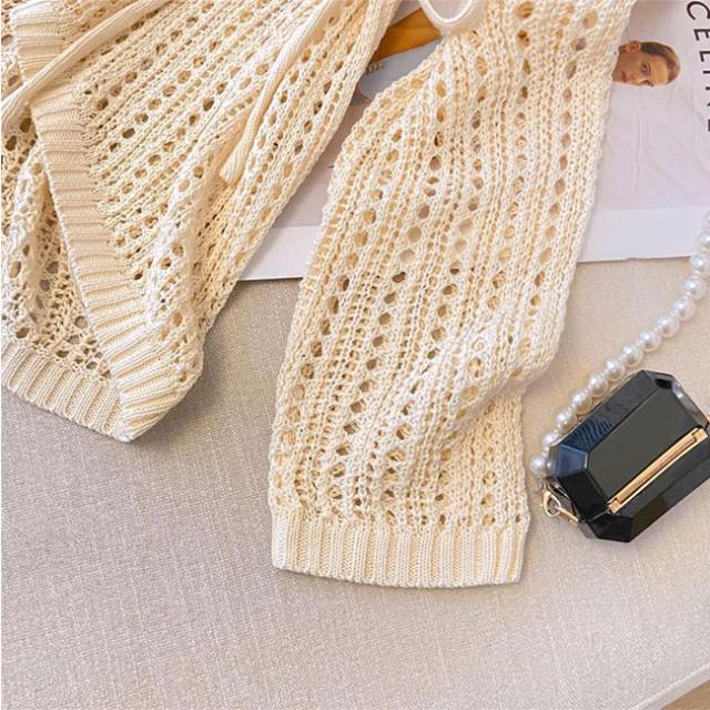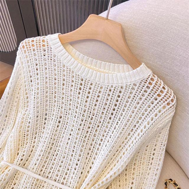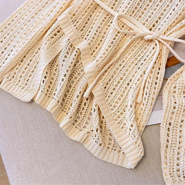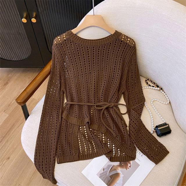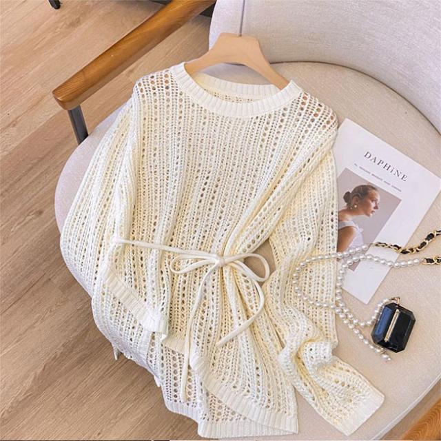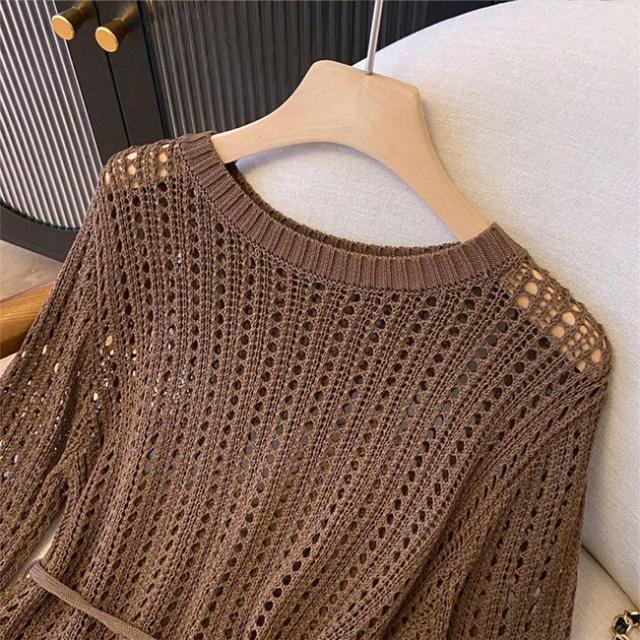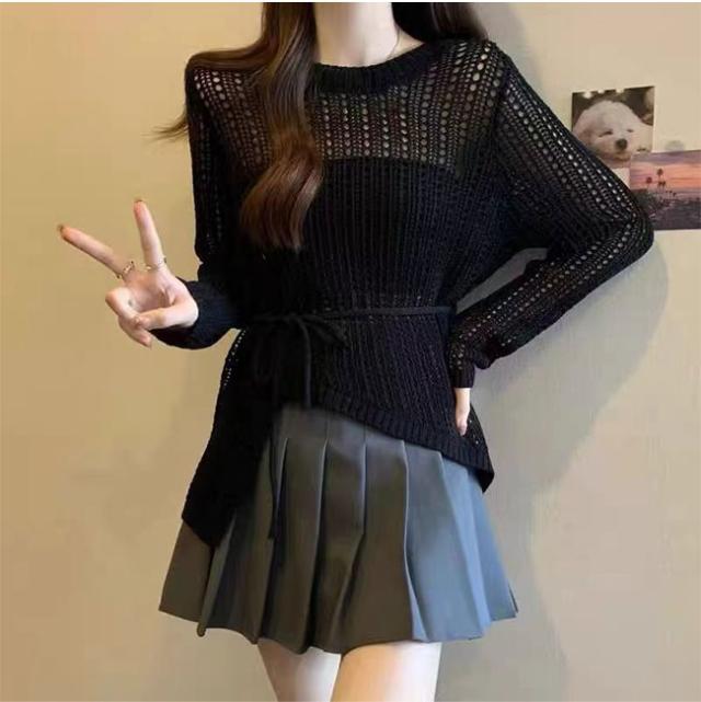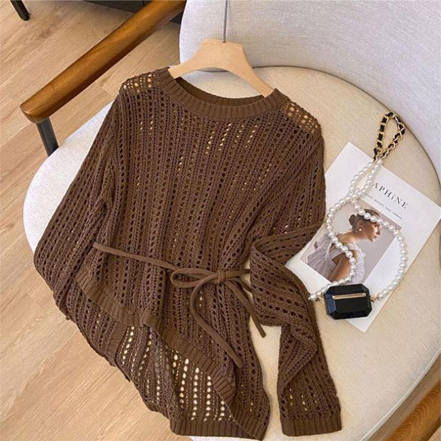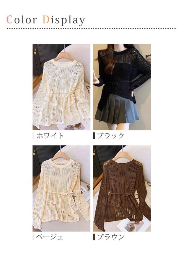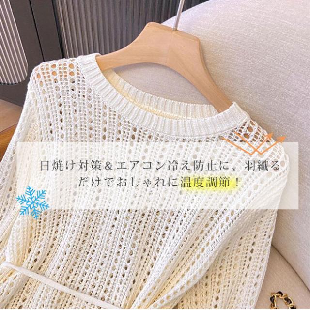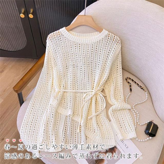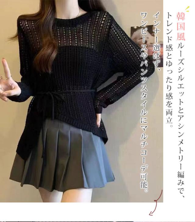 シーズンヒット 薄手プレミアムニット アシンメトリーレース編み ルーズシルエット エアコン対策に最適
