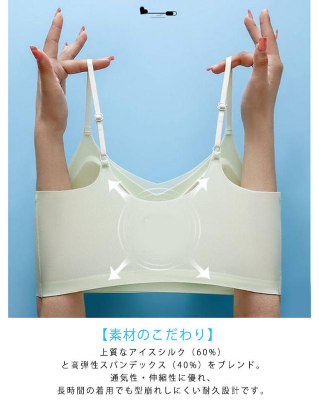 | 超薄型プラスサイズ アイスシルク コンフォートブラ ? 冷却効果で暑さとムレを軽減! まるで雲のように軽やかな着け心地のシームレスブラ 【素材のこだわり】 上質なアイスシルク(60%)と高弾性スパンデックス(40%)をブレンド。 通気性・伸縮性に優れ、長時間の着用でも型崩れしにくい耐久設計です。 【3大快適ポイント】 1?? 冷却機能:吸湿発散素材が熱を逃がし、ひんやり快適 2?? シームレス設計:縫い目なしの滑らか仕様で、肌擦れや圧痕を防止 3?? 超軽量:厚み約1mmの極薄構造で「着ているのを忘れる」軽さ 4 肩ひも調整可能 【こんな方に】 ? ワイヤーやホックの締め付けが苦手 ? 夏の暑さや汗対策が気になる ? 下着ラインが目立たない服を着たい 360°全方位ストレッチで、体型に自然になじむノンアジャストタイプ。 タンクトップの下や寝具としても使える、マルチウェアブルな一枚です。 | |