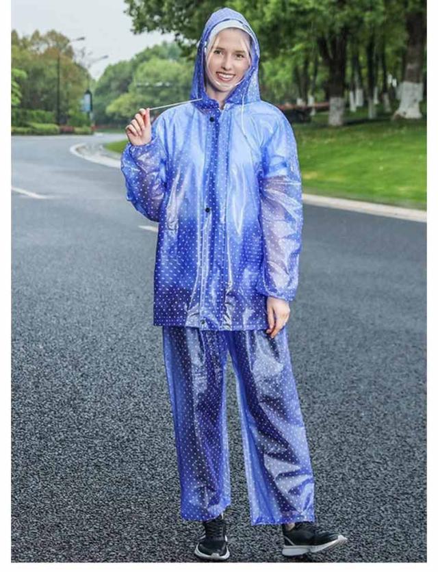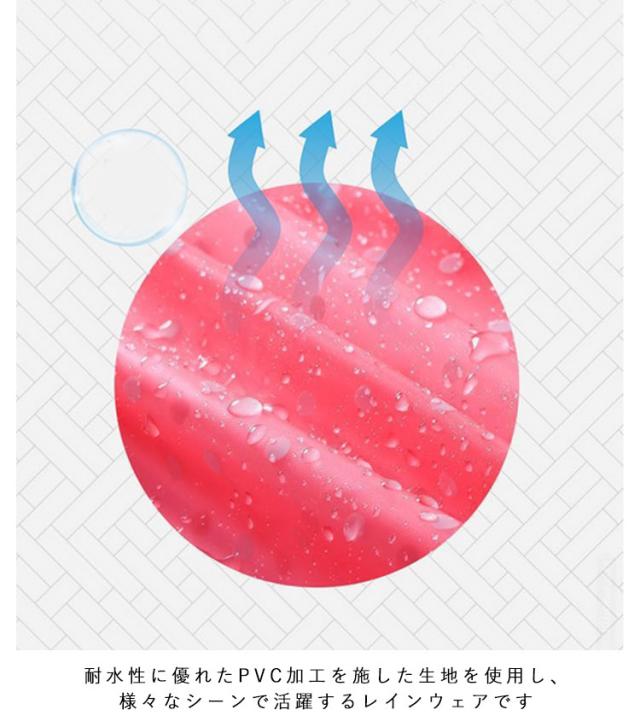 | 男女兼用の上下セットレインコートです。 耐水性に優れたPVC加工を施した生地を使用し、様々なシーンで活躍するレインウェアです。 透明な大きめのつばを採用し雨にぬれにくく視界を遮らないので自転車も安心安全に運転できます。 ジップとスナップボタンの二重仕様でしっかり防水防風! | |