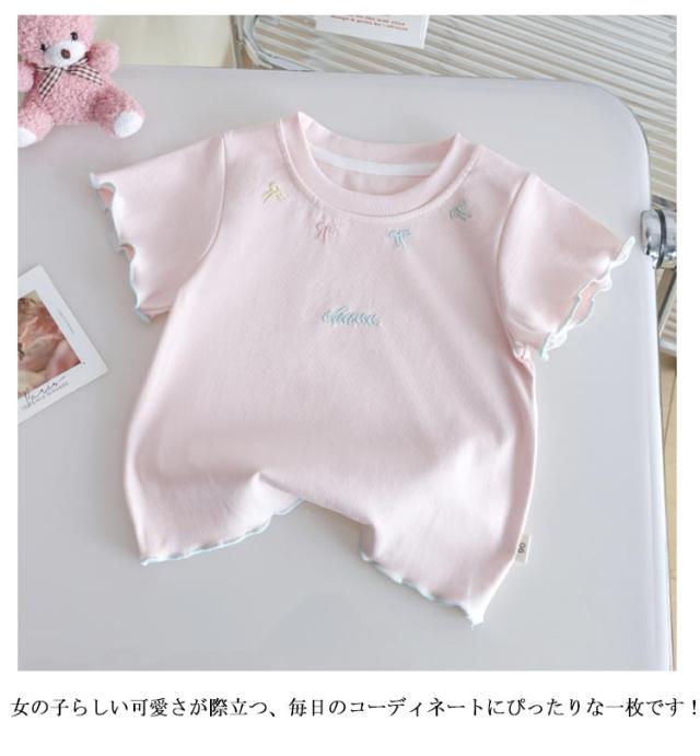 トップス 【送料無料】半袖 夏用 シンプル 綿 キッズ 女の子 tシャツ 子供用 リボン 刺繍 【送料無料】半袖 Tシャツ おしゃれ ガールズ ベビー服 通園 通学 保育園 幼稚園