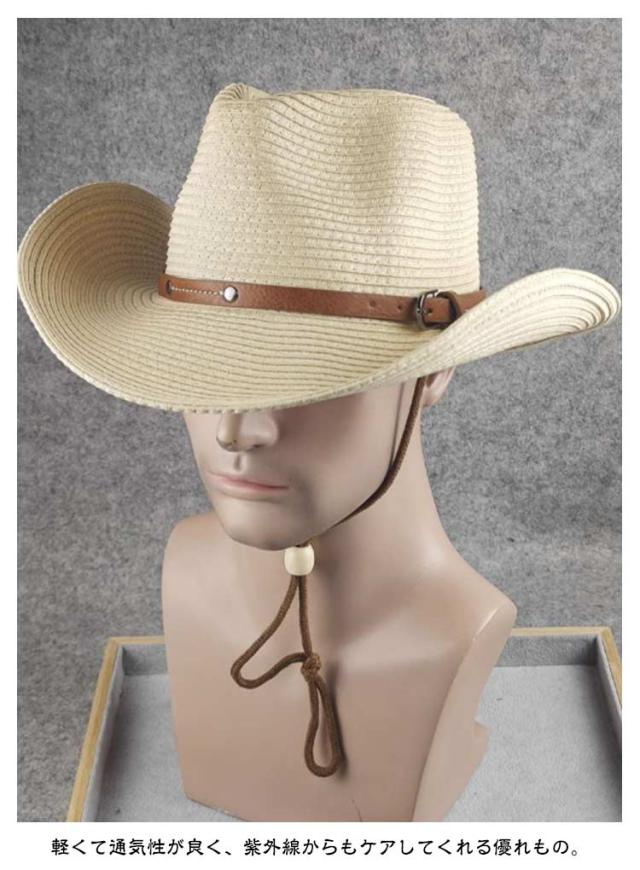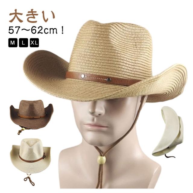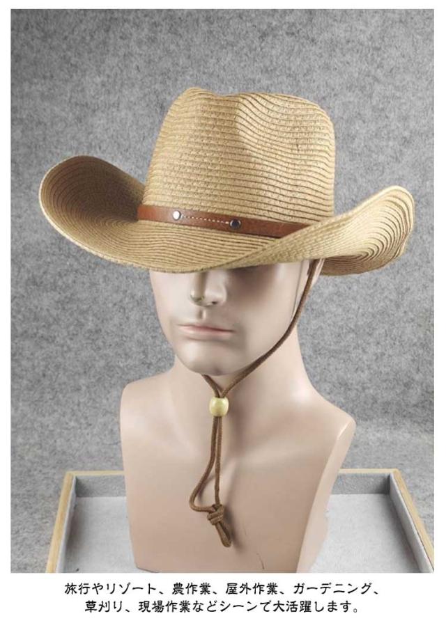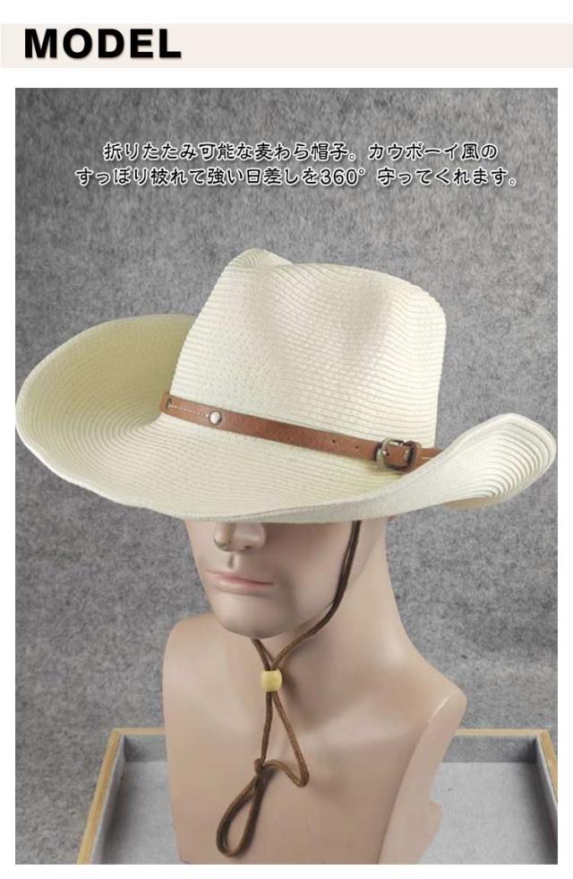 大きい 春夏 おしゃれ ストロー レディース ストローハット メンズ 中折れ ウエスタンハット UVカット つば広 カウボーイハット 麦わら帽子 帽子 紫外線対策 折りたたみ 大きい 日よけ 紐付き 日除け ビーチ 海 農作業 草刈り アウトドア 旅行 父の日