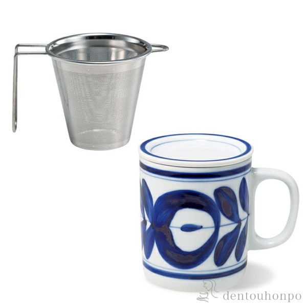 波佐見焼のマグカップと、茶こしの中でも使いやすくて人気の高いSS茶こしのセット商品です。マグカップと茶こしは当店のオリジナルギフトボックスに入れてお届けいたします。