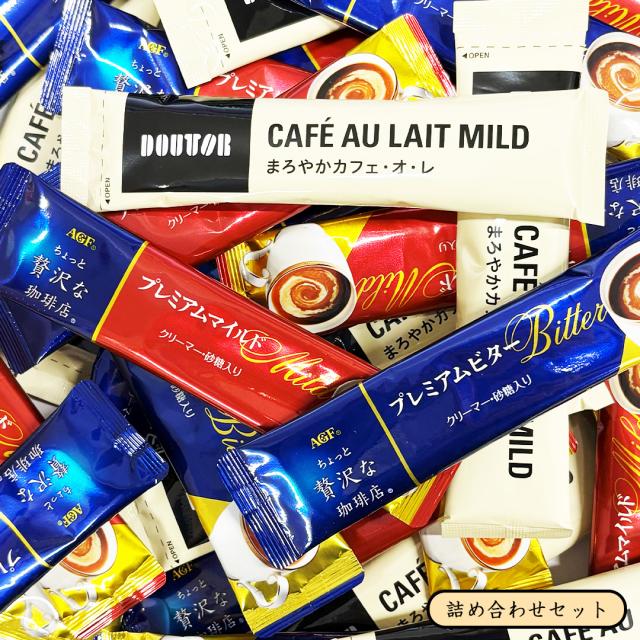 コーヒースティック 詰め合わせ 32本 味の素AGF ちょっと贅沢な珈琲店 ドトール おいしい まろやかカフェ・オ・レ 【袋詰め箱なし】 インスタント コーヒー セット 珈琲 カフェオレ メール便 送料無料 ビター マイルド ブレンド インスタントコーヒー