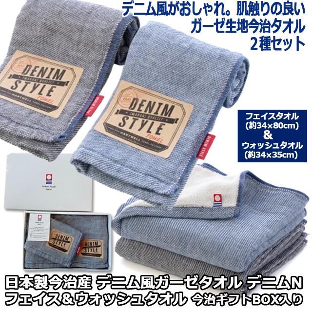 日本製今治産 デニム風ガーゼタオル デニムN フェイス&ウォッシュタオル2種セット/今治ギフトBOX入り 今治タオル 34×80cm 34×35cm 高吸水 やわらか ウォッシュアウト感