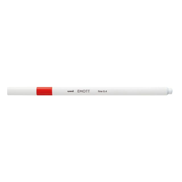 ・従来のサインペンのペン芯は書いているうちにつぶれてしまい、描線幅が太くなったりかすれたりすることがあります。『EMOTT(エモット)』は、従来のサインペンと異なりペン芯をアウターで覆うことでペン先がつぶれず、耐久性のある折れにくいストレスフリーなペン芯となっています。また、アウターがあることでペン先が守られ、様々な筆記角度での使用ができるだけでなく、描線幅が変わらずに0.4mmの細い線を描き続けることができます。