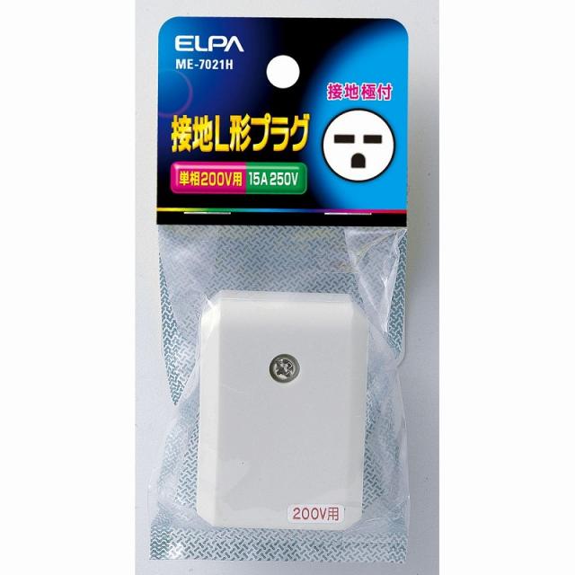 朝日電器(ELPA) 接地L型プラグ 単相200V用 15A 250V 【品番:ME-7021H】
