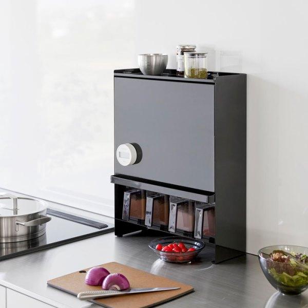 ●調味料ボトルやスパイス類を隠して一括収納!