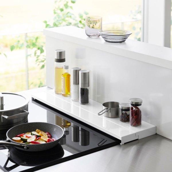 ●調味料などの小物だけでなく大きめの鍋やフライパンなどの一時置きにも便利。