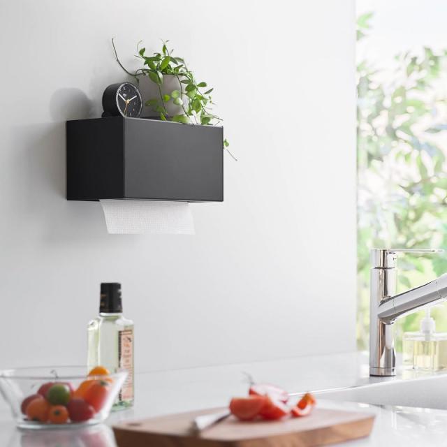 山崎実業 マグネットトレー付きペーパータオルディスペンサー タワー ブラック 4903208021937 【品番:02193】