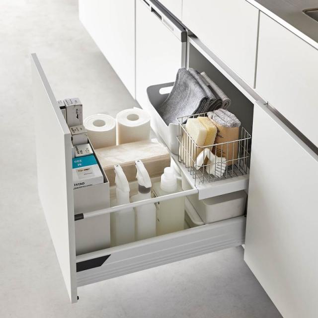 ●キッチンや洗面台の引き出しのサイドバーに掛けるだけで収納力がアップ!