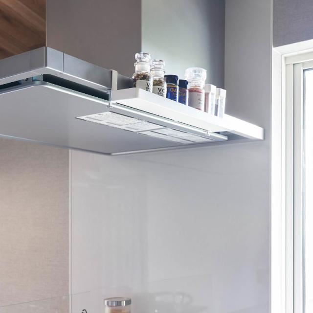 ●レンジフードのお好みの位置に簡単取り付けできるスパイスラック。