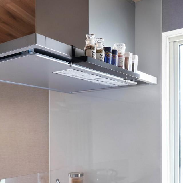 ●レンジフードのお好みの位置に簡単取り付けできるスパイスラック。