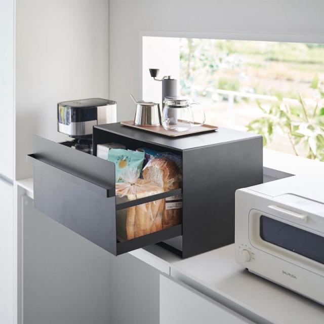 ●パンや調味料、ラップや調理道具をすっきり隠して収納できる2段の引き出し型ブレッドケース。