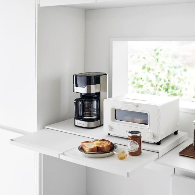 ●家電下に便利な作業スペースができるキッチンスライドテーブル。