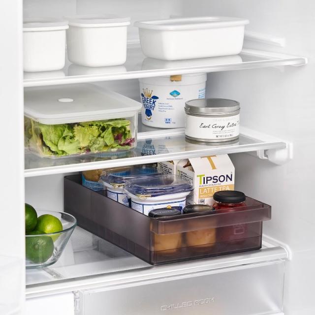 ●冷蔵庫の奥まで無駄なく使えるワイドな仕切り付き収納ケース。
