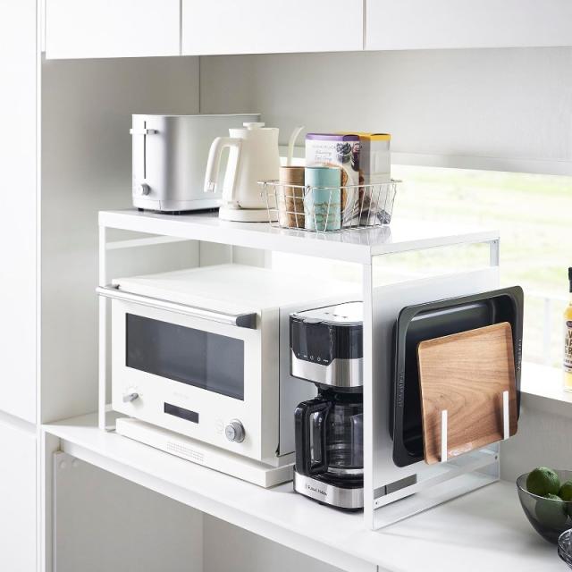 ●オーブンレンジのまわりを有効活用できるスチールパネル付きレンジラックです。