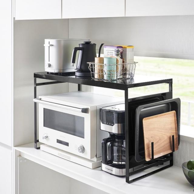 ●オーブンレンジのまわりを有効活用できるスチールパネル付きレンジラックです。
