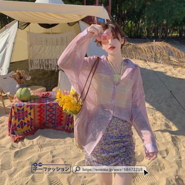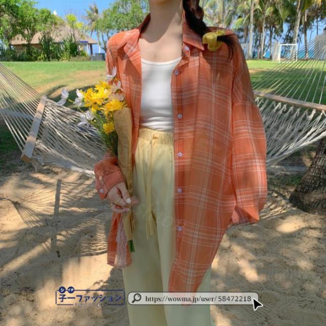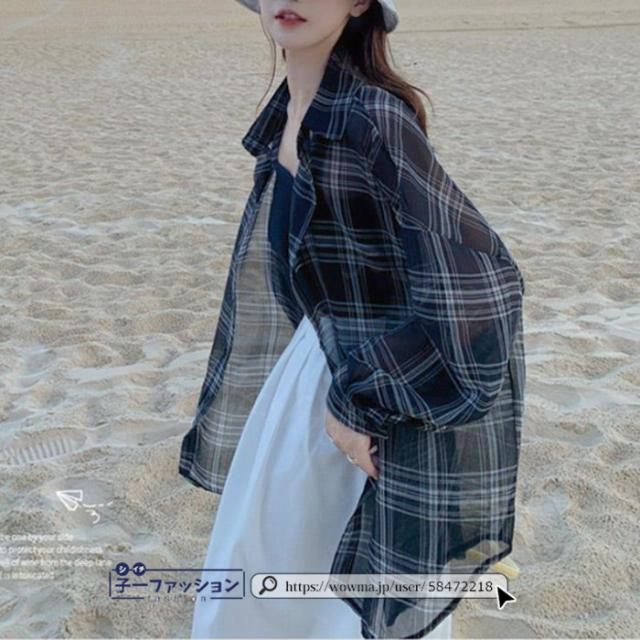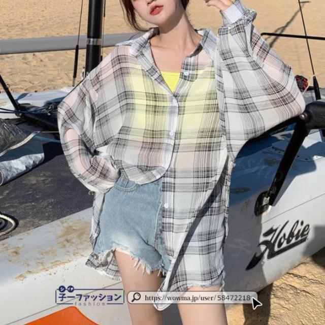 シアーシャツ チェックシャツ 長袖 シャツ 冬新作 新作 トップス レディース UV対策 紫外線対策 透け感 冷房対策 ドロップショルダー オーバーサイズ ゆったり 羽織り ビッグシャツ 春 夏 秋 夏服 通勤 20代 30代 40代 50代 秋冬