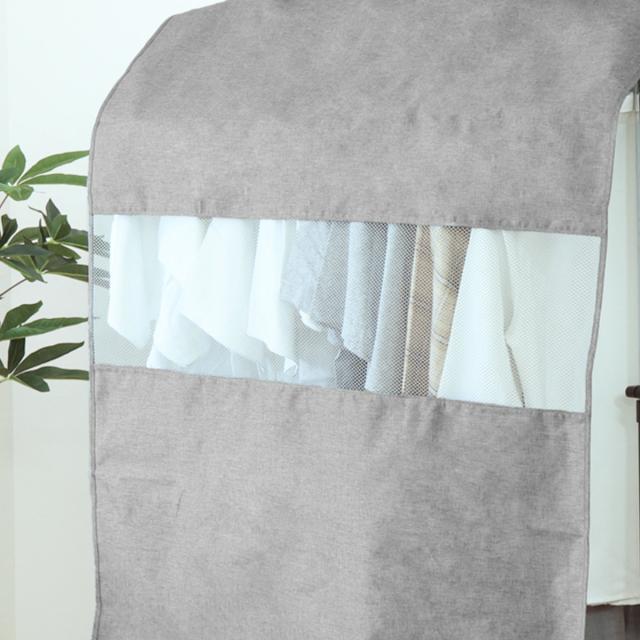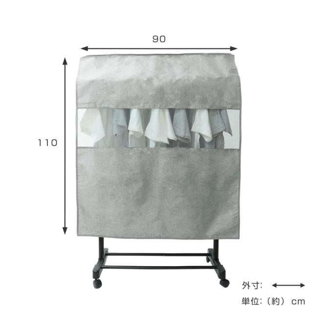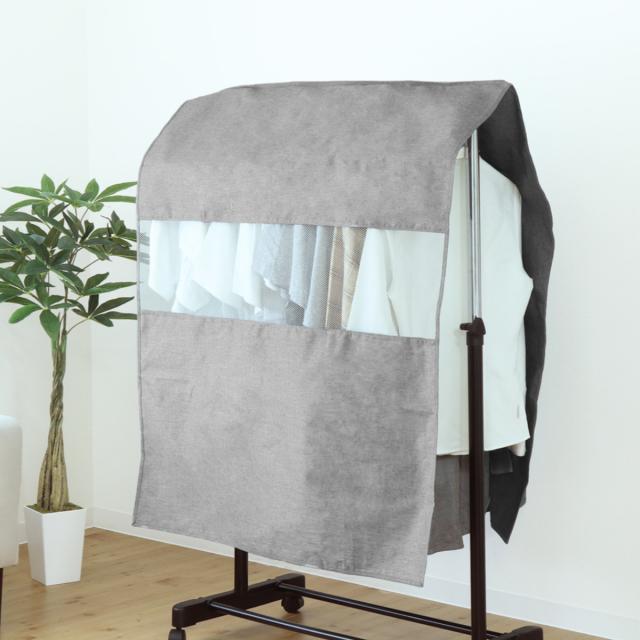 ハンガーラックに掛けた衣類をほこりから守ります。幅90cmのハンガーラックのシングルバータイプに使用できます。ホナチュラルなグレーのカバーは、見た目もスッキリして生活感を隠せます。