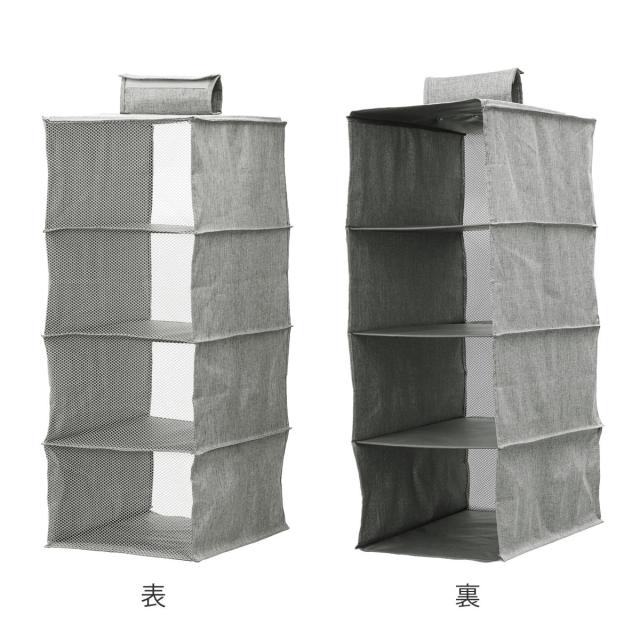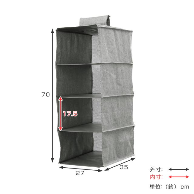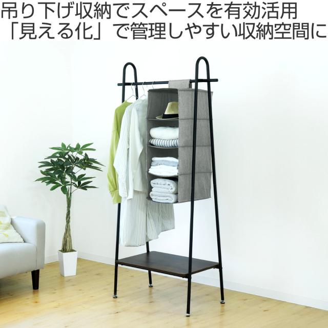吊り下げ収納 ハンギングラック ワイド 4段 クローゼット 幅27×奥行35×高さ70cm ( 収納 衣類 衣類収納 洋服 型崩れ防止 吊り下げ 仕切り 収納ボックス 収納ラック ボックス ハンガーラック セーター 帽子 カバン 省スペース )
