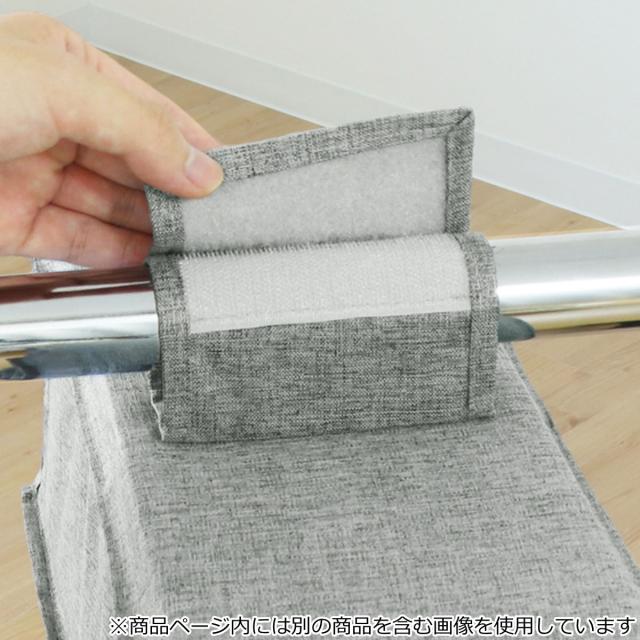 ハンガーラックのパイプに面ファスナーでしっかり固定できる設計です。工具不要で、好きな位置に簡単に取り付けられるので、収納スペースを無駄なく活用できます。しっかり固定されるため、使用中も安定感があり安心です。