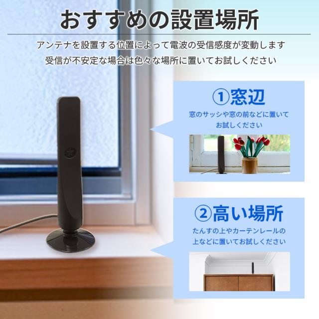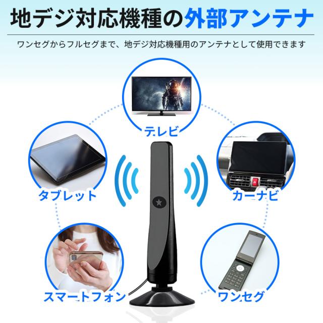 \簡単接続の室内アンテナ/地デジ対応機種に接続して地デジ番組が見れるようになる室内アンテナです。※視聴できる番組はお住まいの地域で受信可能なチャンネルによって異なります。こんな方におすすめ!・新しくアンテナ未接続のテレビを購入した方・もともと付属していたアンテナじゃ電波受信が弱い・車でテレビが見れるようにしたい・詳しくないけど簡単に設置したい