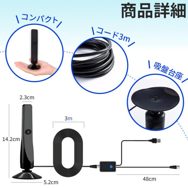 室内アンテナ アンテナ テレビ 2個セット テレビアンテナ ポータブル 地デジ TV ブースター 増幅器 車 4K HD 対応 360°受信 高感度 卓上 置き型 吸盤 ブースター内臓 簡単設置 UHF VHF対応 コンパクト USB アンテナケーブル カーナビ スマホ Android ワンセグ 接続 電波 電界