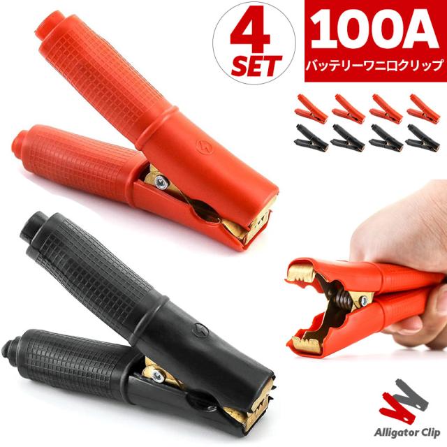 バッテリークリップ ワニ口 100A ワニ口クリップ 赤 黒 4セット ワニグチ ブースターグリップ ブースターケーブル 簡単装着 車用品 自動車 カー用品 カーバッテリー 電源コード 車 バッテリー 電気テスト 赤黒セット