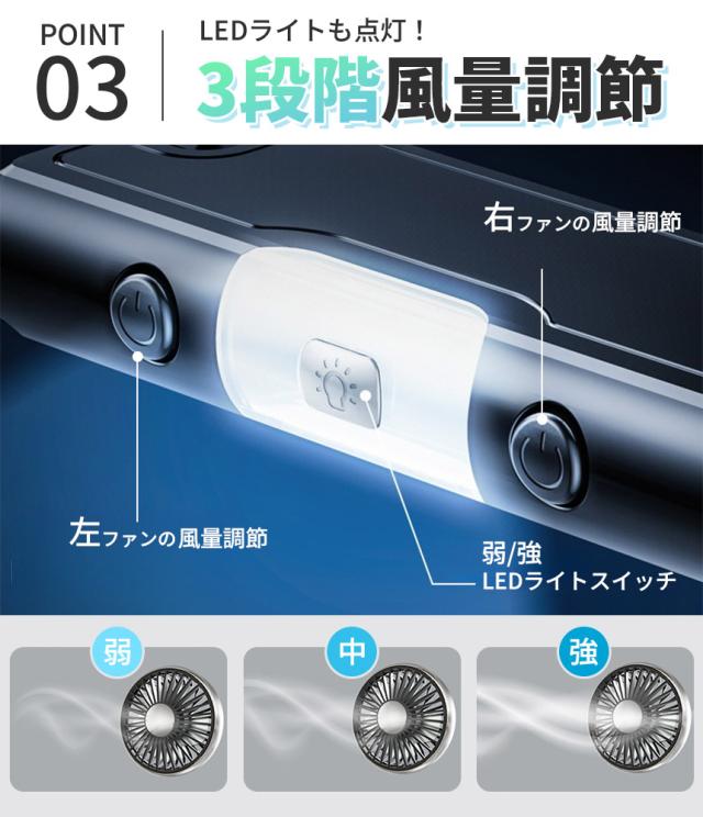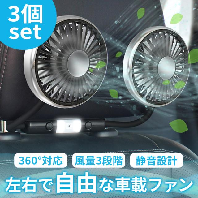 車載ダブルファン 扇風機 左右独立タイプ 3セット 車載扇風機 車 ツインファン 静音 ヘッドレスト 後部座席 助手席 運転席 クーラー エアコン 車内 換気 循環 熱中症 電動ファン 暑さ対策 LEDライト付き 送風機 涼しい 自動車 角度調節 静か 卓上 USB給電式 カーシート 強力