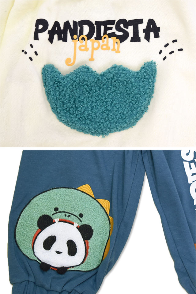 和柄ブランド【錦】の姉妹ブランドとして誕生した、お茶目なパンダをモチーフとした【PANDIESTA JAPAN】より「ダイナソーパンダ クロップドスウェットパンツ(585755)」のご紹介です。 今や、錦の定番モチーフとなった「錦PANDA」!! ソフトタッチな手触りのTC混素材をベースに使ったスウェットパンツが登場しました。 『ゆるくてカワイイ』をコンセプトした『PANDIESTAシリーズ』から、ダイナソーアイテムが新登場しました。 ダイナソーの着ぐるみに身を包んだパンディエスタを、モコモコとした手触り感のあるボア素材を用いてアップリケ刺繍で施しました。 サイドには恐竜のとげとげが飛び出しています! ウエストはゴムと紐でサイズの調節が出来るようになっています。 タウンユースはもちろん、ルームウェアとしてもオススメ。 | ||||||||||||||||||||