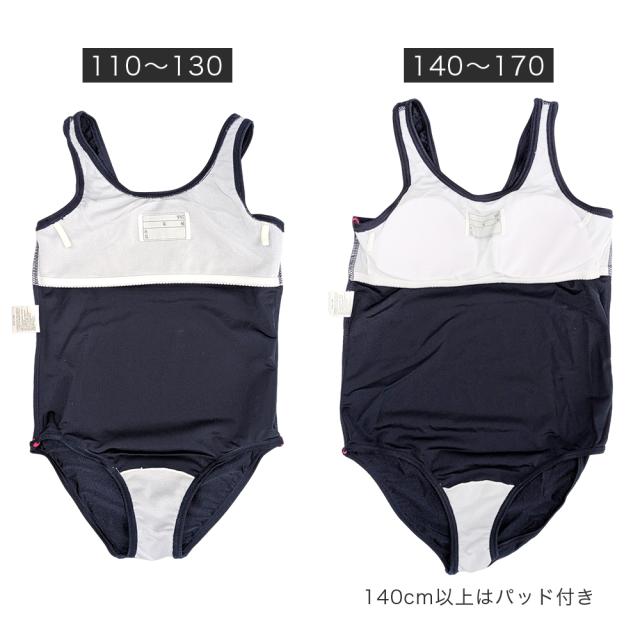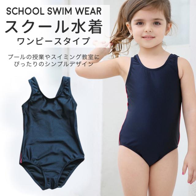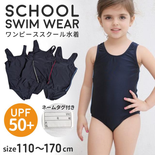 スクール水着 女の子 ワンピースタイプ ネームタグ付 UVカット [UPF50+紫外線対策加工] シンプル 無地 ライン キッズ ガール 女子 スイムウェア 110 120 130 140 150 160 170 幼稚園 小学生 中学生 スイミング スクール 水着 日焼け止め プール 学校