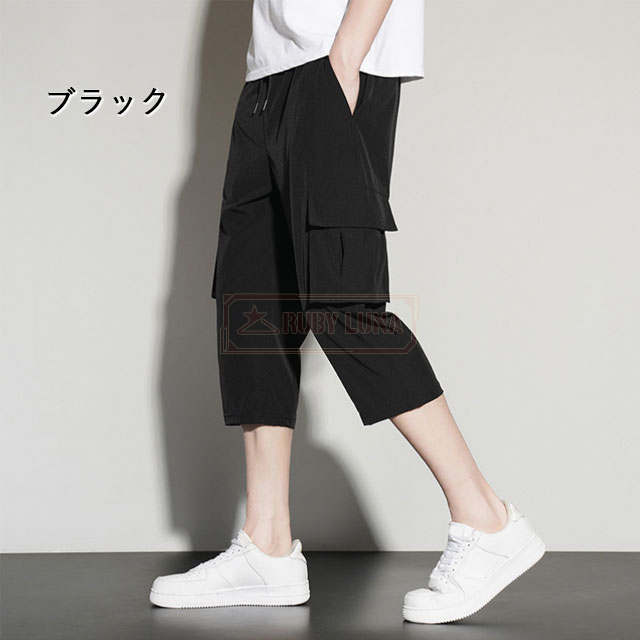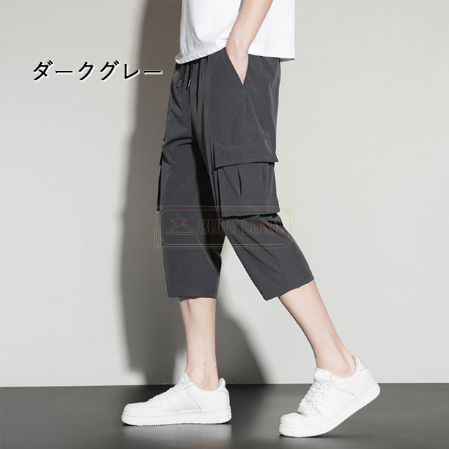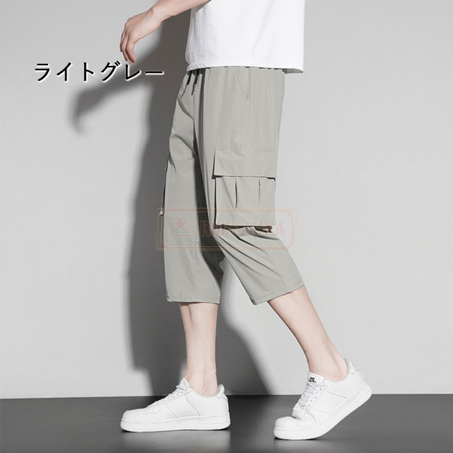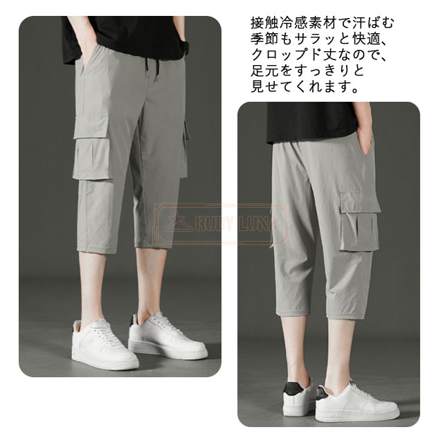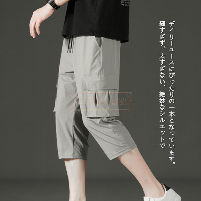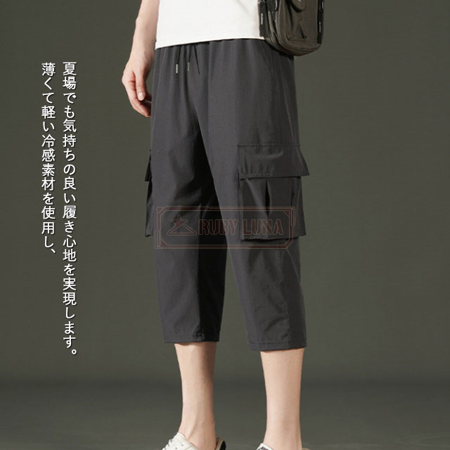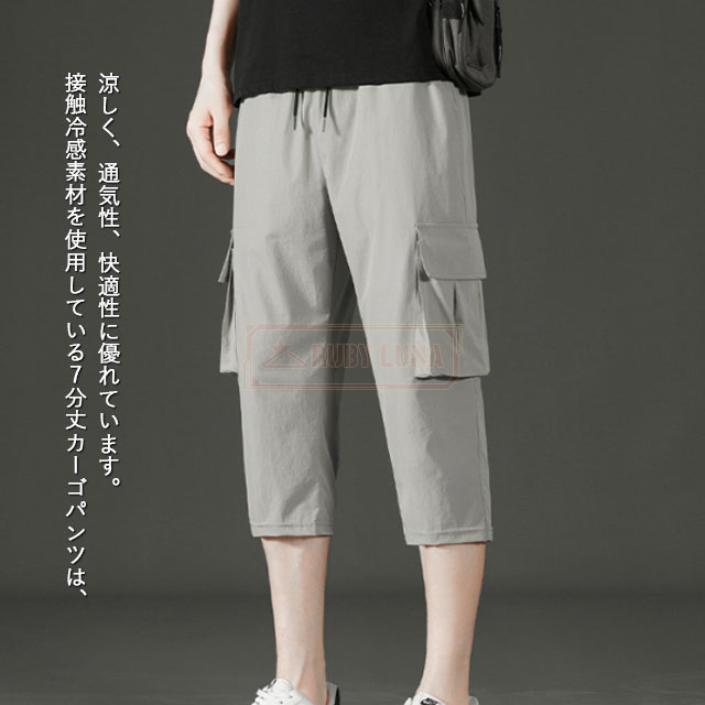 最安挑戦 冬新作 送料無料 新作 パンツ メンズ ハーフパンツ ひざ下 クロップドパンツ 七分丈 薄手 夏用 アイスシルク 接触冷感 涼しい 無地 春夏 冷感 カーゴパンツ カジュアル ズボン 7分丈 ゆったり クール感 大きいサイズ